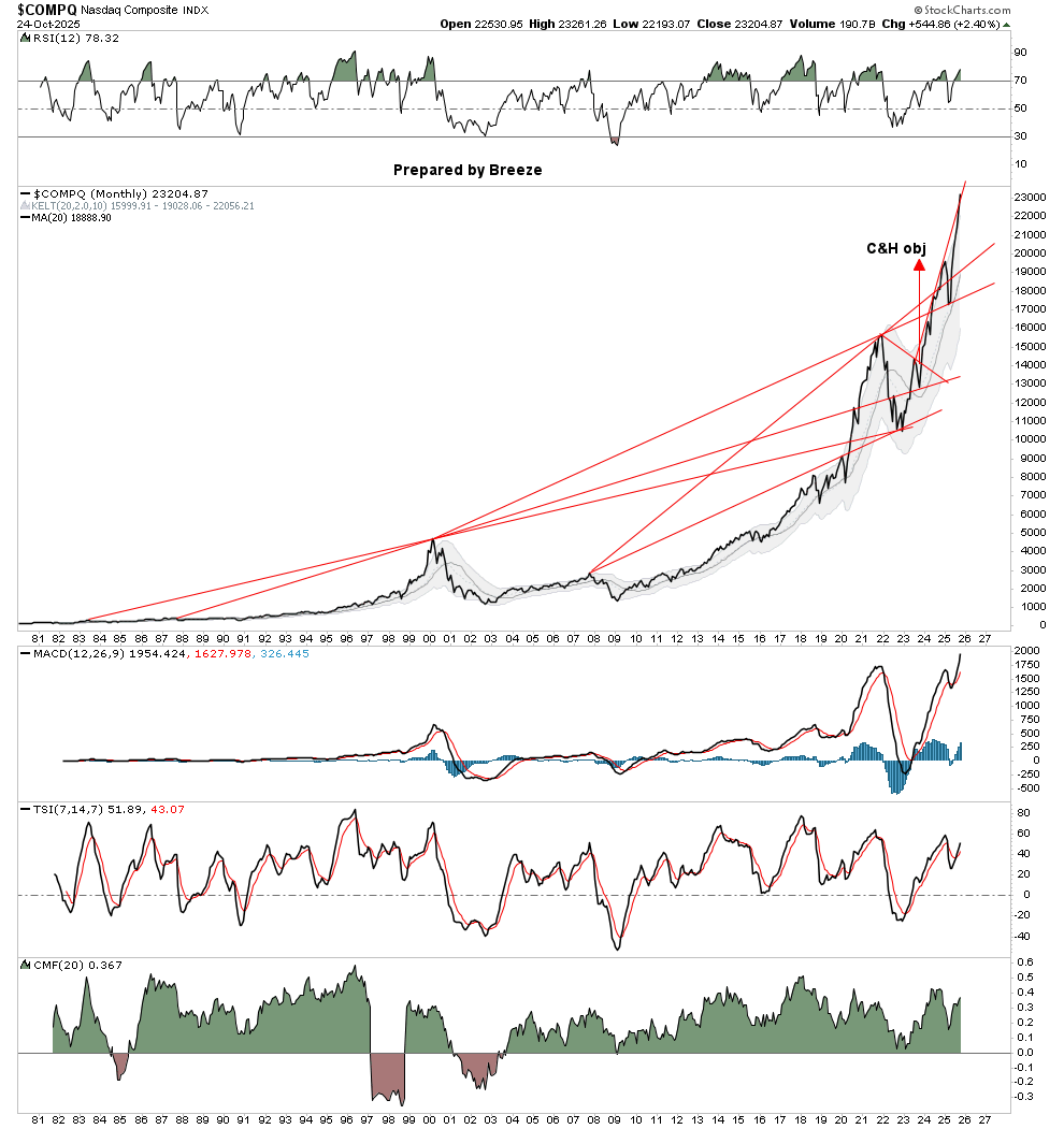 $COMP Month Line Chart with the red lines. Closed above that steep ascending redline. Breeze