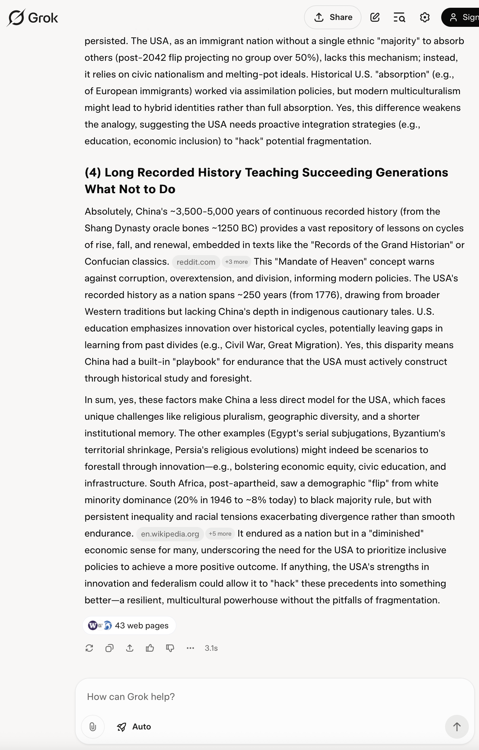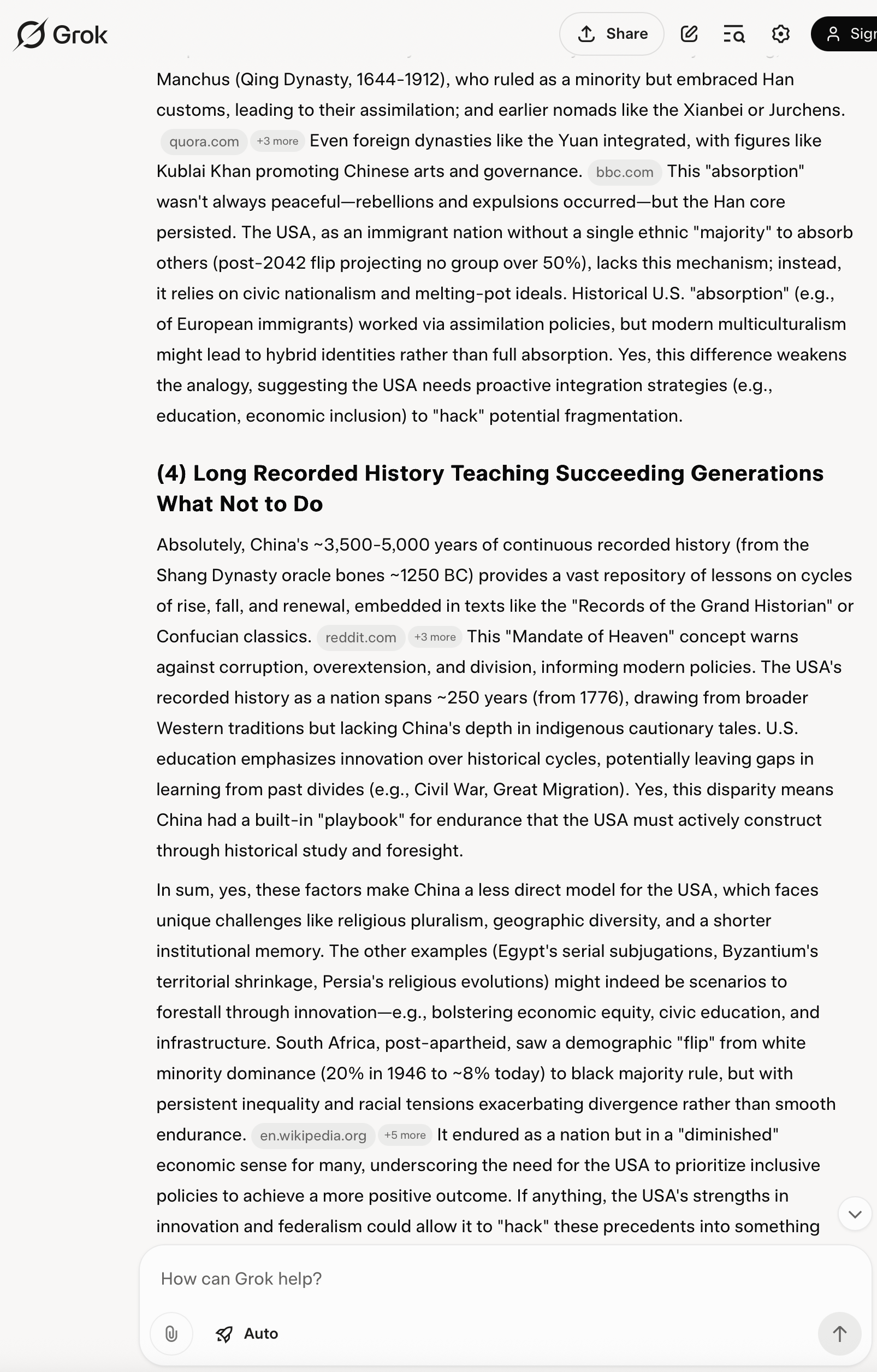 I asked Grok "Can China feed its population?" and received the answer I expected, and the answer is satisfactory. Unsure why you brought up the topic.