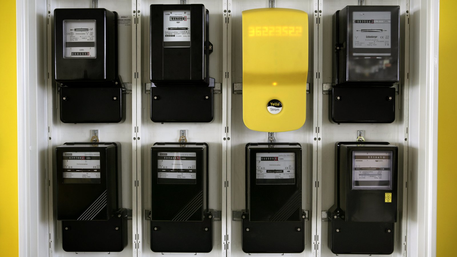 The 'intelligent electric meter' from Yellow Strom between conventional electric meters. Image: Ulrich Baumgarten via Getty Images