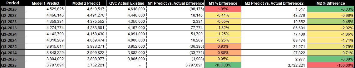 I will write-up what I see tomorrow and update the model(s) with what QVC reports so see if the predictions hold up.