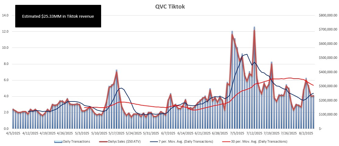 Trend has been all over since Christmas in July so waiting to see where it sits, regardless the business is far too small to matter right now. If I use $50 for an average transaction value (ATV) then since they put a heavy focus on the app April 6th this is about $25.33M in revenue - not bad by any means but cable declines are not slowing either. To re-frame this, the social/streaming revenue is not in addition but offset and so far that offset is small. Like I wrote before this is still trending towards a $86M business on a full annual cycle.