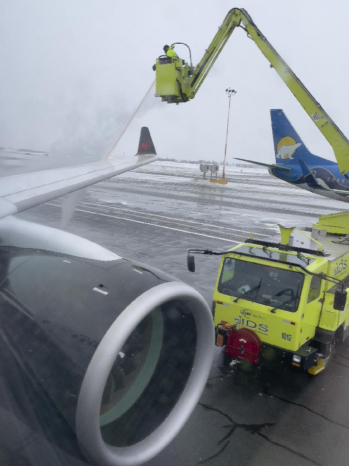 On a trip last week (first in a while) I had thoughts of two Zen disruptive products in close proximity (not the Zen versions yet, however): masks handed out on the plane and the de-icing going on out the window. The second one spawned a question: