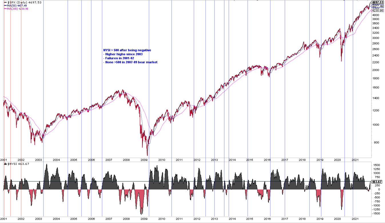 "Here’s a breadth study that’s actionable. After being negative, $NYSI is just 36 pts away from +500.