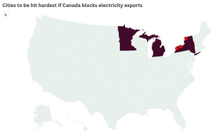 Map Shows Cities to Be Most Impacted by Canada 25% Tariff on Electricity Story by Anna Skinner • 3h •
