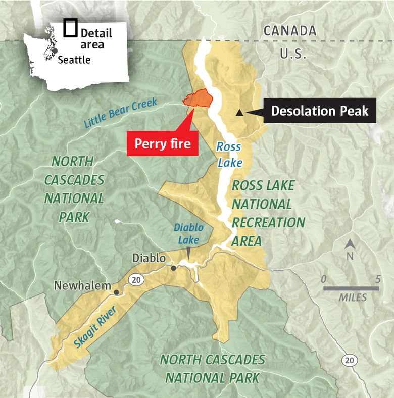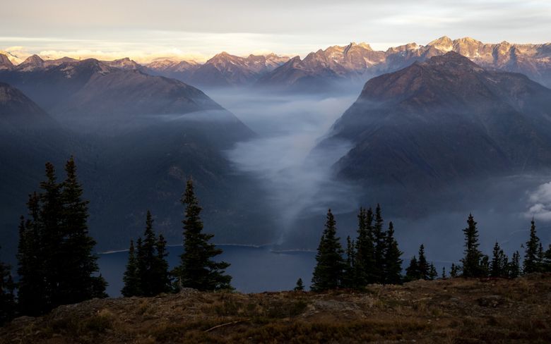 He’s seen his fair share from this perch 6,102 feet above sea level, plenty of them close enough to belch their smoke straight into his face. This summer, flames across Ross Lake were so widespread that the mountainside appeared to hold a small city, Henterly said. The Perry fire has since calmed, though smoldering trees and logs remain.
