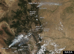 | | Colorado Wildfires 2012: NASA Satellite Captures Image Of Multiple Smoke Plumes From Fires Burning Across State (PHOTO) Posted: 06/27/2012 4:45 pm Updated: 06/27/2012 4:48 pm