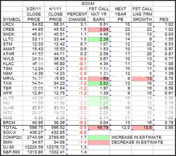 This is the weekly look at the SOXM stocks in terms of earnings estimates, growth estimates, and price changes sorted by price percent change.