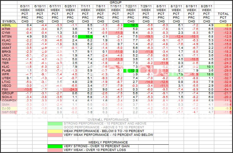 This is the update of the 13 week rolling quarter for the Group stocks in terms of percent change.