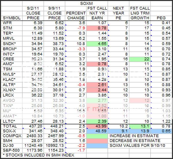 This is the same SOXM data as the last post, but this time it is sorted by PEG.
