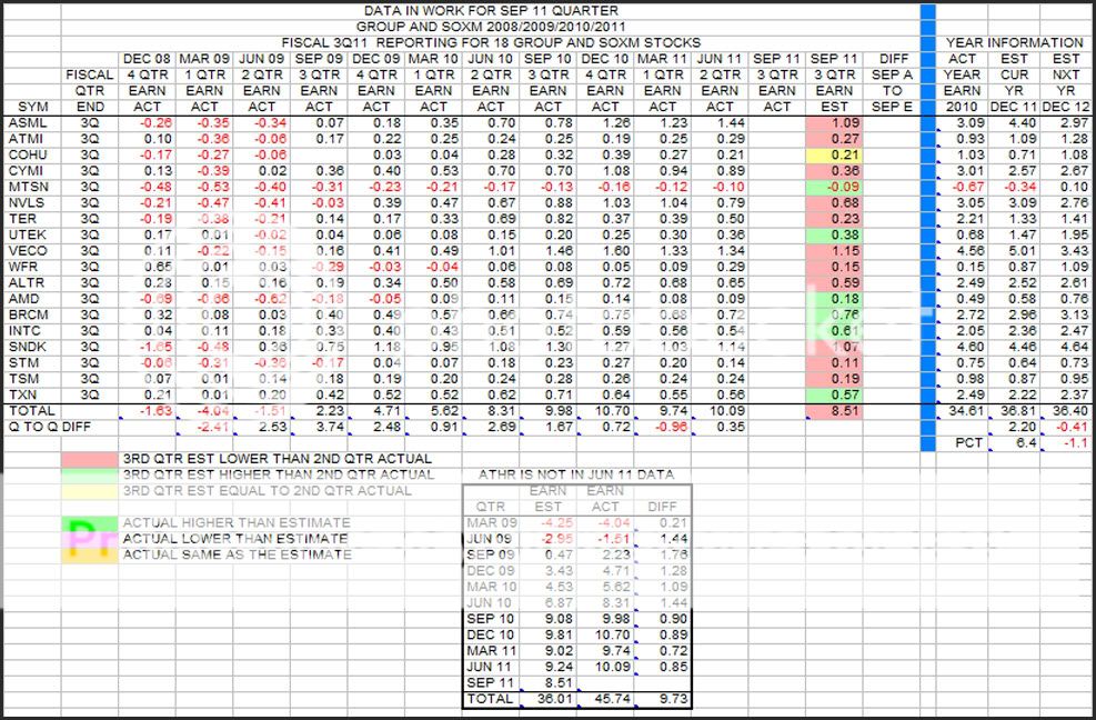 At the moment, the end of the 3rd CY quarter is 5 trading days away. The table shown before has been updated with the latest data of estimates for the 3rd quarter and 2011 and 2012 yearly estimates.
