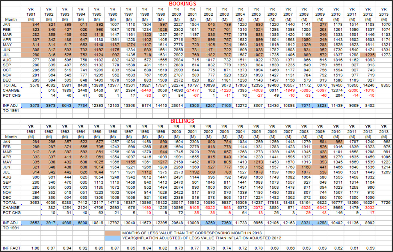 This is the updated "long" table for Bookings and Billings going all the way back to 1991.