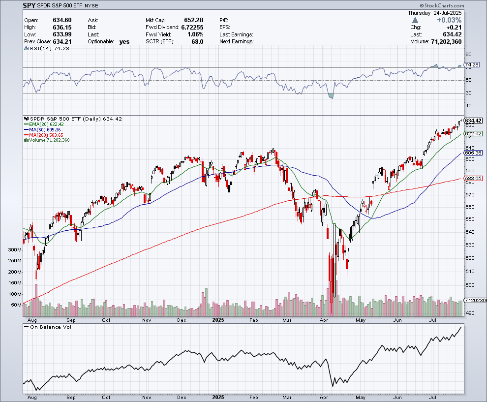 Another 52 week high on the SP500, supported by a new high on the OBV.