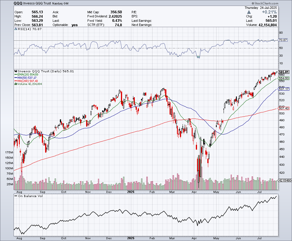 COMPQ momentum starting to stall. It needs some sideways consolidation before the next direction or some good news.