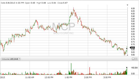 I am interested in how shorting operates on MCP. This was unusual mid-day activity that covered a range of 5.60 to 6.07 with swings up of 7.3% and down of 7.7%. Are traders covering their shorts starting at 1pm? Are sellers depleted by 1:15pm? Why the linear "avalanche" till closing? Is it oversold at 3:45 and bargain hunters moving in anticipation of tomorrow afternoon's earning report? Is this typical of high shorted stocks with characteristics like MCP?