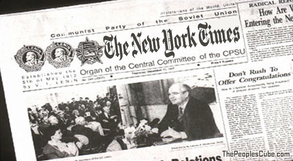 On September 27, 2017, the satirical People's Cube ran a piece, " The New York Times, organ of the Communist Party."