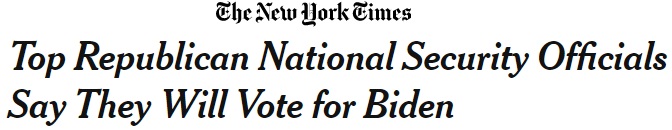 Let's see, these Republicans backed Hillary who took $100 million from foreigners laundered through her fake charity, and now they back Biden who took a billion from Red China laundered through his coke-addled son.