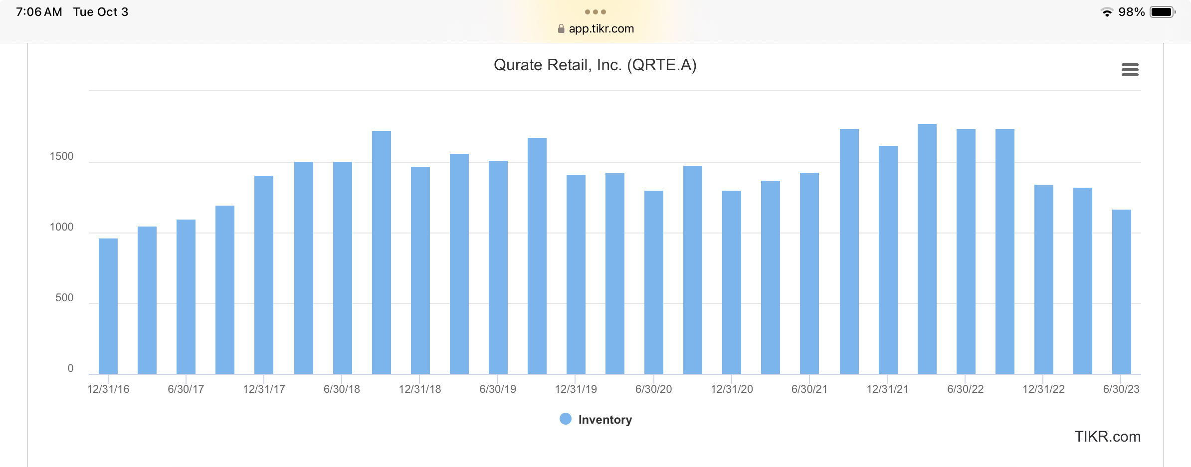 QRTEA run down their inventory to a multi year low. I don’t think they can run it down much further. If you think Qurate can muddle through, you should be buying the preferred QRTEP - it trades for 26c on the dollar and pays you to hold it.