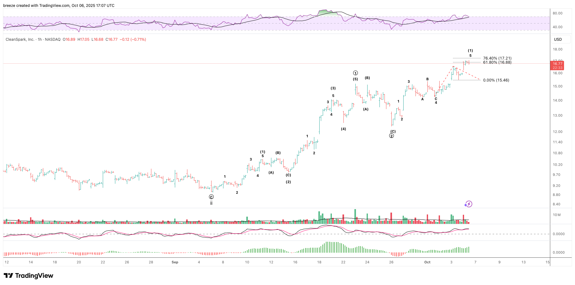 CLSK Wave Count Update. Submicrowave (1) target hit. But may not be complete. Breeze