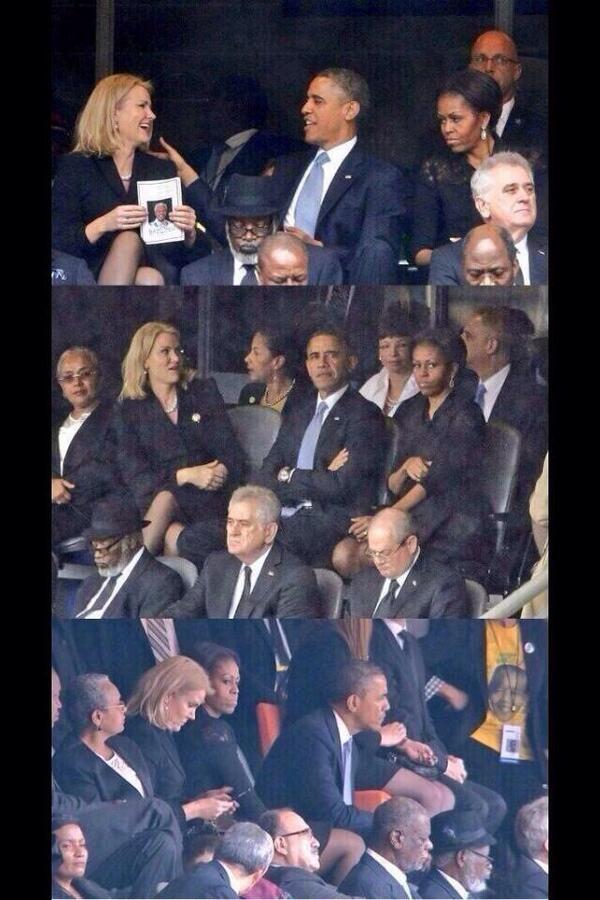 Cutting up and flirting at the memorial service, what a way to show how much Mandela meant to him.