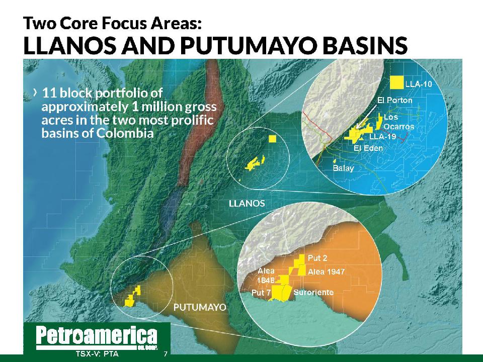 The AssetsPetroamerica's assets cover 11 block portfolio of approximately 1 million gross acres in the two most prolific basins of Colombia, the Llanos Basin and the Putumayo Basin, as illustrated below: