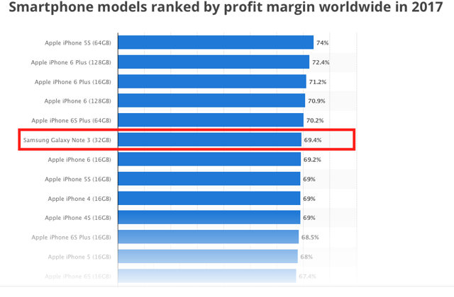Chart 1 Shows that over the past several years, including models going back to the iPhone 4 in this chart, only one Samsung smartphone was among the top models by profit margin through the end of 2017.