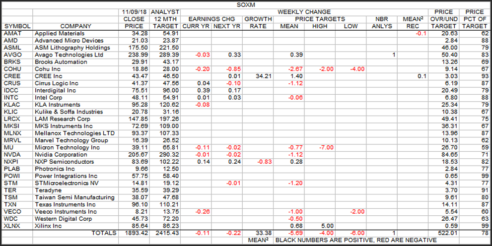 COHU hit rather hard this week in earnings estimate reductions leading to price target reductions. MU had a large reduction in the "high" price target estimate.