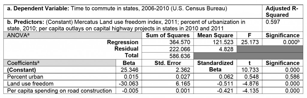 The statistical models make sense. Contrary to what mass transit enthusiasts contend, building roads reduces congestion (worthy of note: California usually has the nation’s lowest per capita capital spending on roads). The spontaneous order of the free market appears to reliably deliver shorter commute times than when central planners carefully manage growth through theoretical models enforced via government diktat.