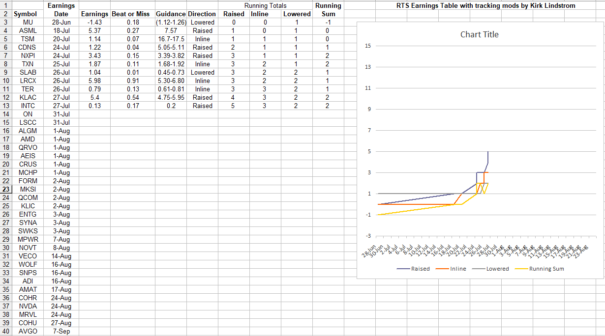 Earnings' Table Update Including Beats by KLAC and INTC and Raised Guidance by Both!