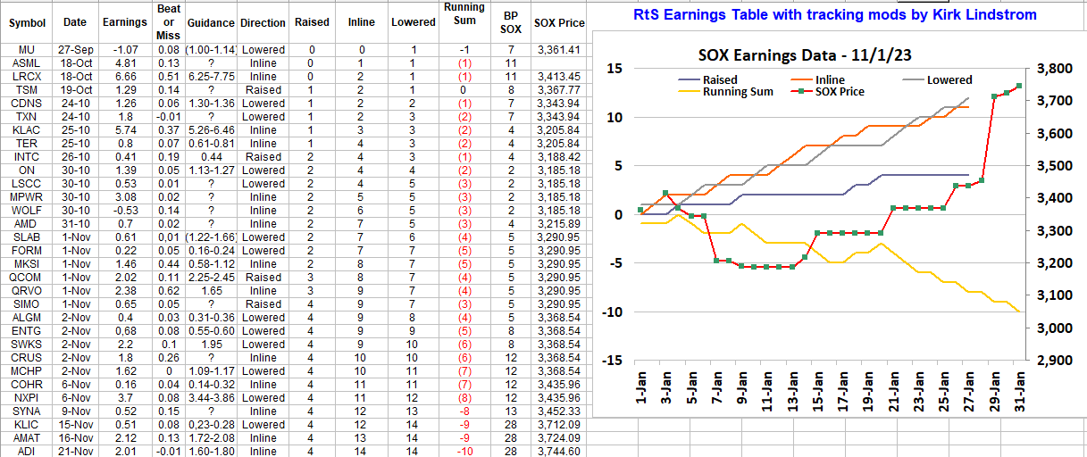 Earnings' Table Update Including ADI's Report which was called Inline but looked like lowered guidance to me: