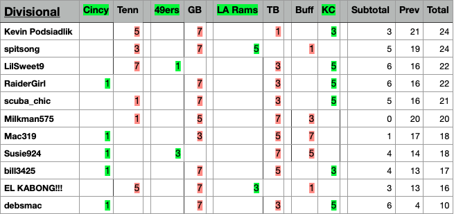 *********************** NFL DIVISIONAL WEEKEND RESULTS ***************************