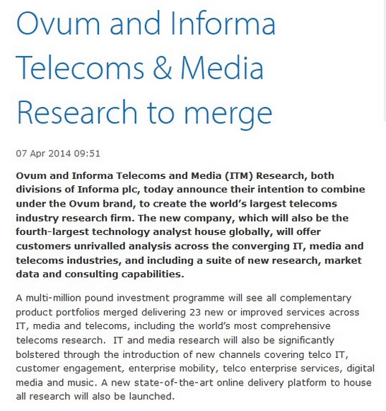 Footnote: The Informa Telecoms & Media research business (ITM) referred to in my blog is separate from the Informa Telecoms & Media Group, even though they share the same name.