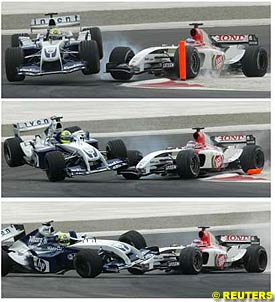 But Sato claims Schumacher had left him with no room heading into turn two and said: "I knew we were side-by-side and going into turn two he shut the door and I had no room because of the kerb. Ralf didn't give me any space."