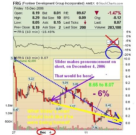 Slider you are not being honest with your StockCharts Charts! You continue to show the start of the FRG short starting with November 27 when in fact you did not publically call the short on this board until December 4.