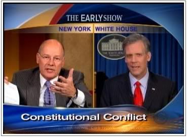 SMITH: Tony, here’s what it looks like is that these, these people who are, certainly serve at the, at the will of the president, or the pleasure of the president, have been kicked out for undue political influence. Even on the front page of your “Washington Post” today you have the lead prosecutor in the big tobacco case saying that the Alberto Gonzales Justice Department, quote/unquote, “political interference is happening at justice across the department. When decisions are made now at the Bush attorney general’s office, politics is the primary consideration. The rule of law goes out the window.”