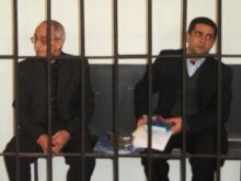 Azerbaijan -- Rafig Tagi, writer, [l] and Samir Sedagetoglu, editor-in-chief of the Senet newspaper in Nasimi District Court, Baku, 19Mar2007