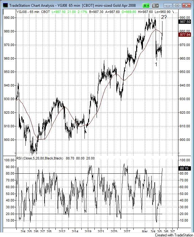 possible deep 2nd wave retracement in Gold..almost completely retraced yesterday's decline...needs to get back below 971 to confirm any kind of top...until then...looks like I am doomed...