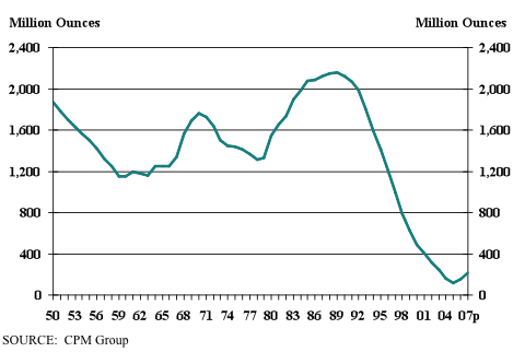 One primary difference between gold and that of silver is its industrial use. Given the technological age we live in, we continue to find new uses for silver. One of the most important developments is the use of silver as a superconductor to produce a range of products which increase the electrical grid capacity and reliability by as much as 30 percent. We have all heard about the electricity crisis that is beginning to occur around the world. With the soaring demand and the deterioration of existing electrical infrastructure, this is one area that should do well regardless of whether you believe we are in a recession or not. The Silver Institute estimates that this application could take as much as 50 million ounces of silver annually. It could also help out the gold and platinum mines in South Africa as their electricity crisis is enlightened.
