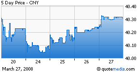 Matt Hougan of Index Universe explains that the exchange-traded note CNY will go up in value when the renminbi appreciates against the U.S. dollar. It will go down when the U.S. dollar strengthens against the Chinese currency. (The long-term likelihood of the latter is small indeed!)