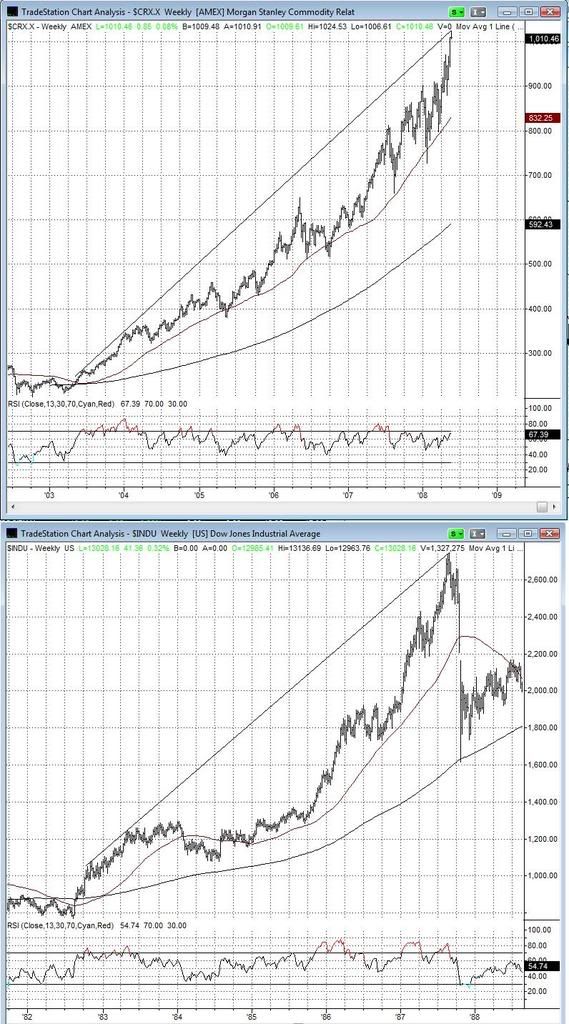Spooky similarity between current move $CRX (MS Commodity Related) and the Dow from 1982 to 1987
