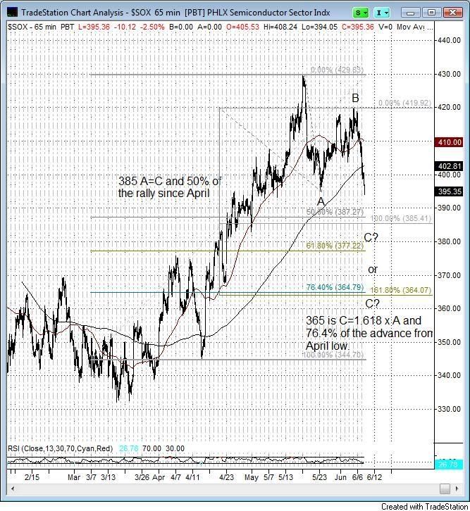385 is A=C from the 5/19 high and 50.0% of the advance from April low