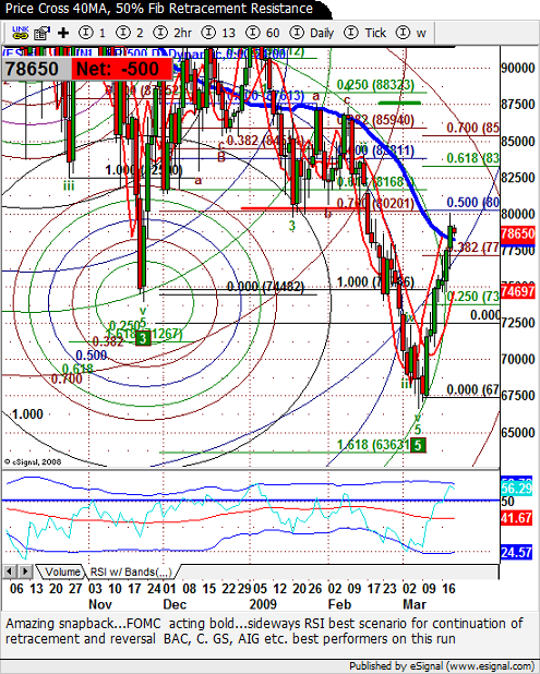 The FED pulls out the stops and the taps are wide open....why is crude still up??? I think gold is selling opportunity? Oversld Dogs best performers, BAC. C, AIG, FNM, FRE, F, 40MA overhead Resistance