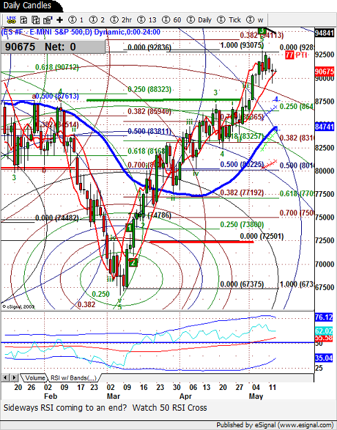 Are we there yet? Don't fight the RSI ...like I've done the last couple of weeks<g> It was strange seeing so many trading the market on the same technical levels? I think the excess bullishness is winding down? I'm expecting to see the charts drift lower...nine weeks up, well a few weeks of drift probably won't spook anyone and give the media and pundits time to make noise? 800-825 still looks good? I don't expect to see alot of options flux this month?