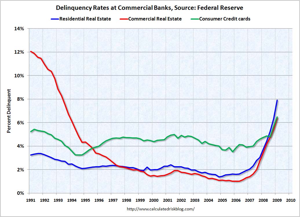 Delinquency Rates - Graphic per CR. Sooooooooooo. Why are my SKF long (effectively short banks) hurting so badly. I mean for a bank bull, .... whats to like in this picture?