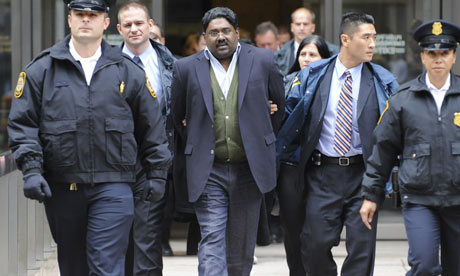Raj Rajaratnam, billionaire founder of hedge fund Galleon Group, is led in handcuffs by the FBI. Photograph: Louis Lanzano/AP