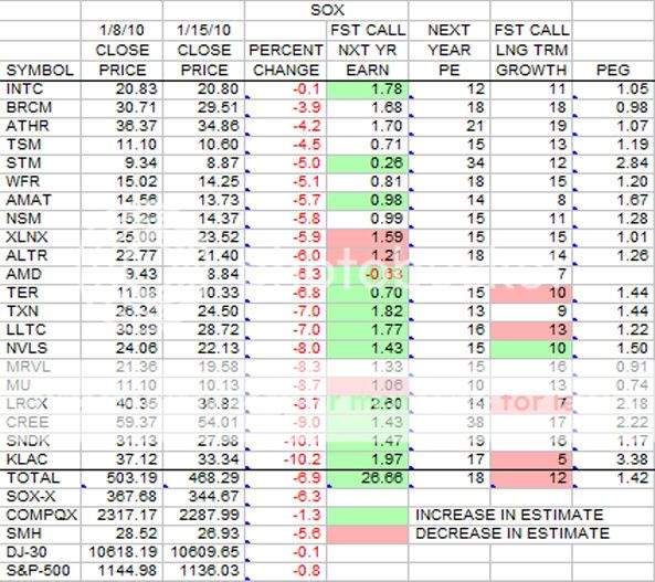 For the SOX the same type of situation exists as for the Group. Twelve of the earnings estimates are up and only 3 were down. In the growth area, 4 estimates were down while only 1 estimate was up.