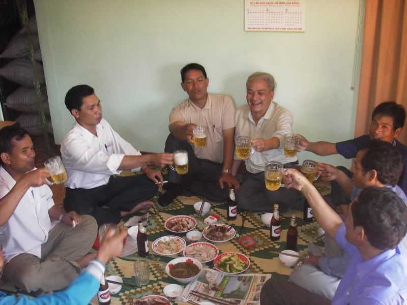 we finished replacing a holding tank at one of our older well projects last week. Hung had to do the mandatory beer drinking and Karaoke party to properly celebrate the new improvements with the village men.
