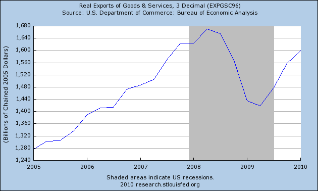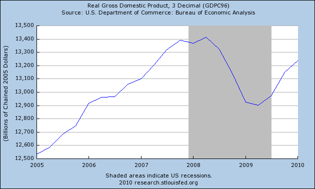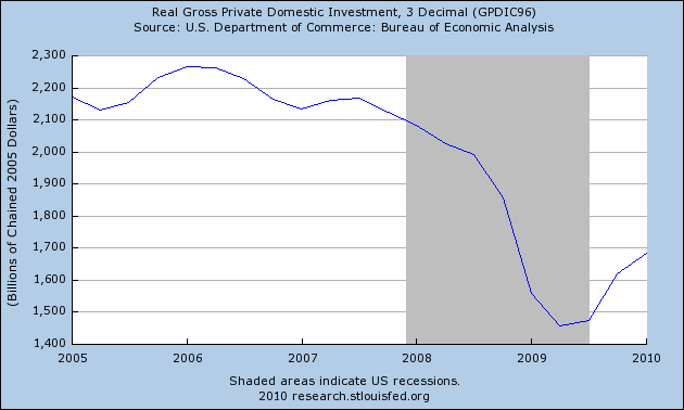 2.) Housing: as I wrote a few weeks ago, housing faces a huge over supply issue. This will probably lead to further price declines. How much is anybody's guess. However, what should happen is an extension of the home buyer tax credit. If this doesn't happen housing will be an issue going forward.But notice that housing has not contributed positively over the last year and the economy has still expanded.