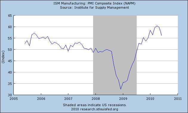 Let's break it down into service and manufacturing sectors as represented by the ISM numbers. Remember, a number above 50 indicates an expansion: