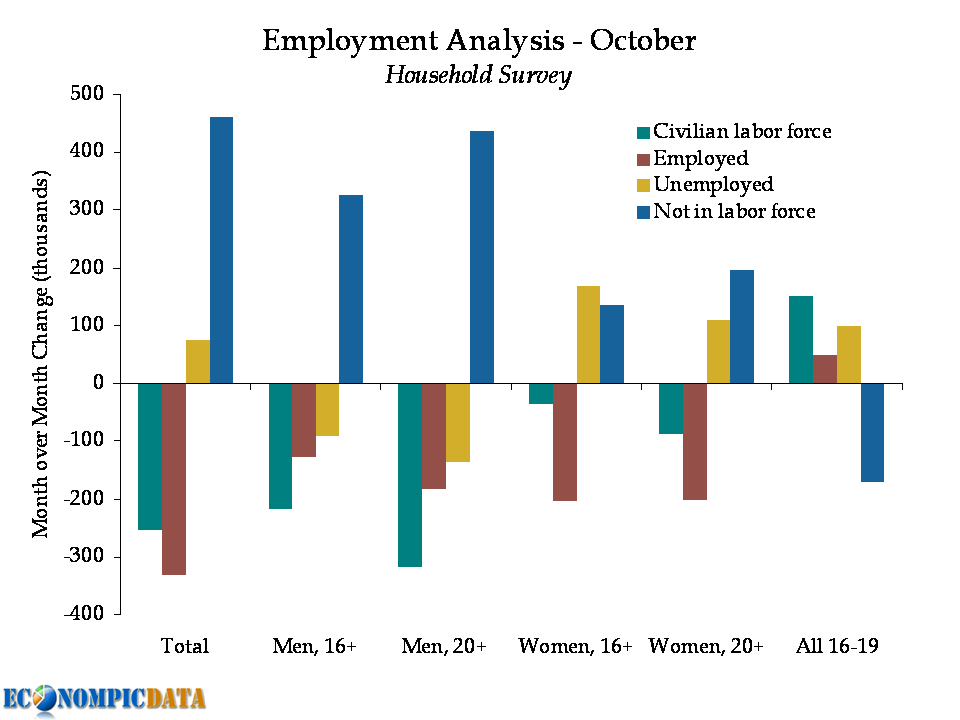 The household survey disappointed, with the number employed actually falling and those leaving the workforce jumping by more than 400k.