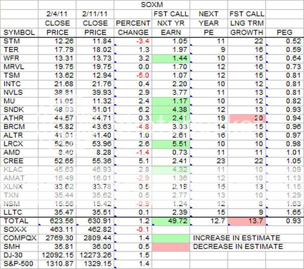 This is the same SOXM data as the last post, but this time it is sorted by PEG.